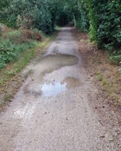 Der Weg am Eisbach war voller Pfützen, auch wenn das von manchem nicht so gesehen wird. Jetzt lässt es sich darauf auch bei Nässe gut fahren und gut laufen.