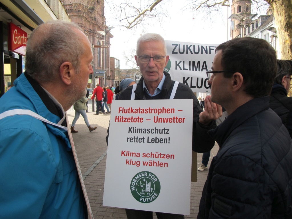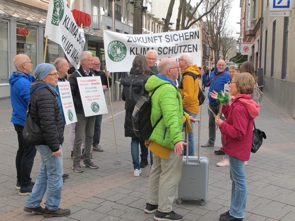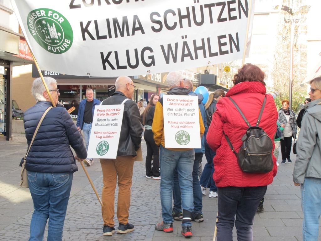 Am 17.12.2022 stellte „Wormser for Future“ sich als Klimagruppe dem Wormser Oberbürgermeister Adolf Kissel und Bürgermeisterin Stephanie Lohr vor dem Wormser Rathaus vor und übergab gleichzeitig einen Forderungskatalog. Dem liegt die Zielsetzung zugrunde generell alle beeinflussbaren Faktoren zu nutzen, um Worms so schnell wie möglich klimaneutral zu machen.