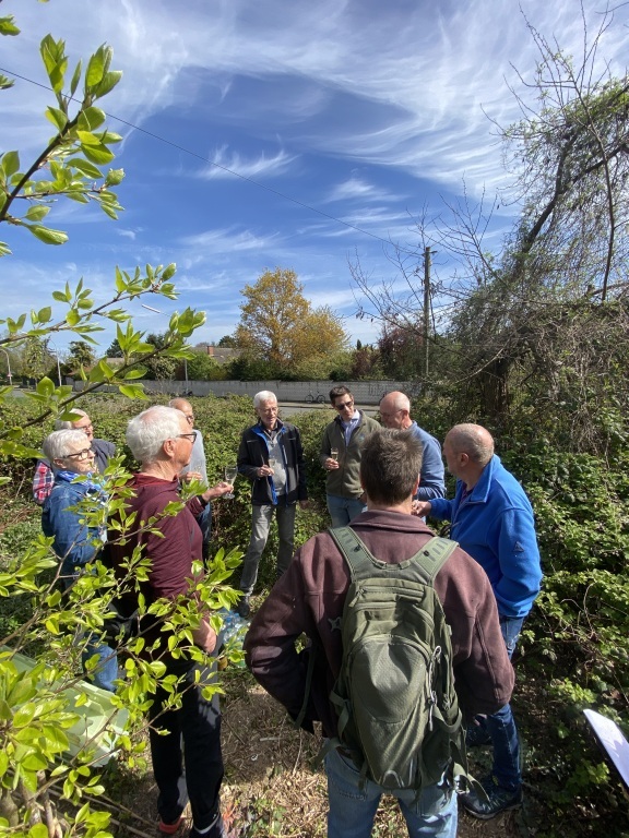 Donnerstagmorgen (09.04.26) um 09.00 Uhr trafen sich dort Aktive von WfF mit Nicolai Kalinke (SDW) sowie Wolfgang Reich und Frieda König von der Abteilung 3.23 Umweltschutz und Landwirtschaft. Dabei geht es darum, welche Art von Fördermitteln des Landes zur Bepflanzung eines Grundstück nördlich von Ibersheim beantragt werden können.
