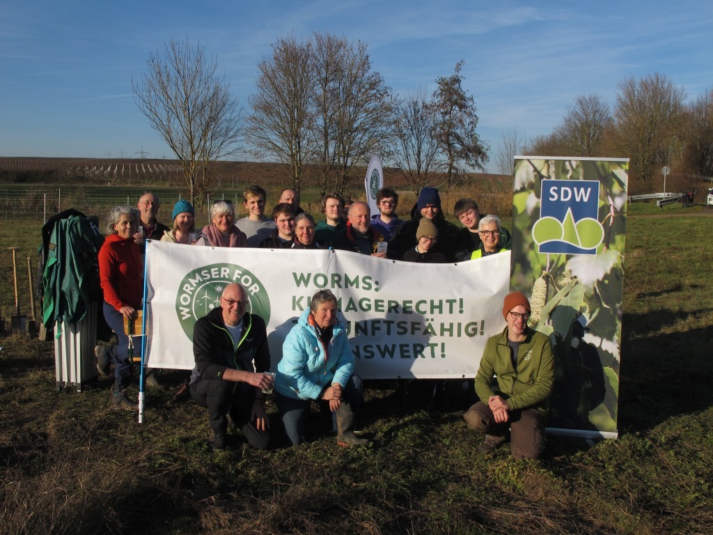 Wormser for Future hat die Aktion zusammen mit der Schutzgemeinschaft Deutscher Wald (SDW) organisiert und bedankt sich an dieser Stelle bei: Nikolai Kalinke, Geschäftsführer SDW RLP, Alexandra Knapp, stellvertretende Geschäftsführerin SDW RLP, Noah Weinbrecht, Forstamt Rheinhessen, der Stadt Worms, hier besonders bei Wolfgang Reich (Abteilung 3.05 – Umweltschutz und Landwirtschaft) und bei der Volksbank Alzey-Worms.